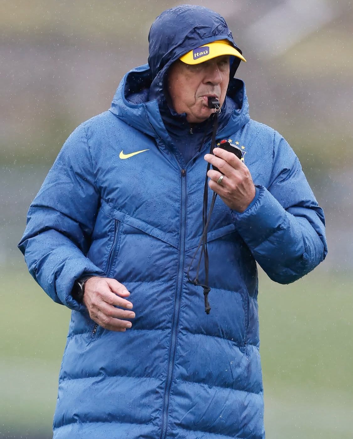 Carlo Ancelotti comandou ontem seu primeiro treino (dessa convocação) com a Seleção completa na Granja Comary e já deixou no ar o esqueleto do time que encara o Chile, quinta-feira (5), às 21h30, no Maracanã.