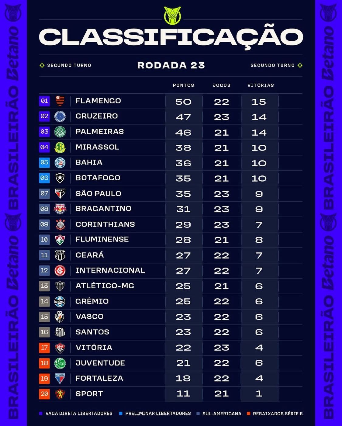 E claro, com rodada encerrada, temos a classificação: