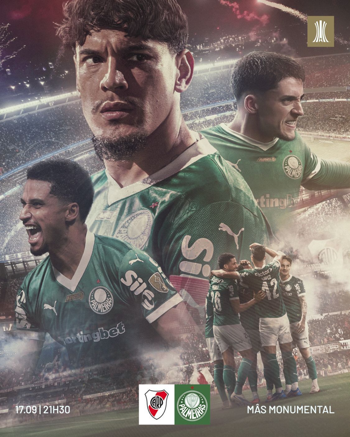 🐷E hoje reserva mais emoção verde e branca: o Palmeiras visita o River Plate às 21h30, no Monumental de Núñez. Estádio esgotado, torcida a todo vapor, River embalado e Verdão confiante após goleada sobre o Inter.