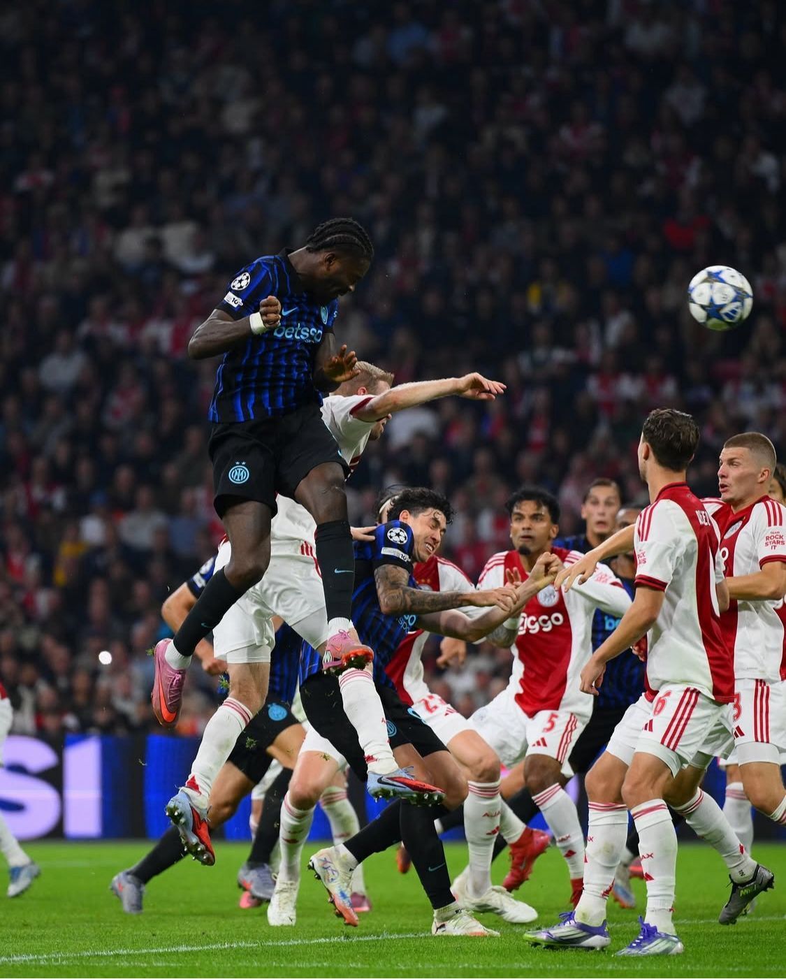 🟦⬛ Thuram salva a Inter em Amsterdã! De cabeça e decisivo, Marcus Thuram marcou os dois gols da vitória da Inter de Milão sobre o Ajax por 2 a 0, fora de casa. O francês foi letal em duas bolas paradas de Calhanoglu e apagou um pouco o trauma da final perdida na temporada passada.
