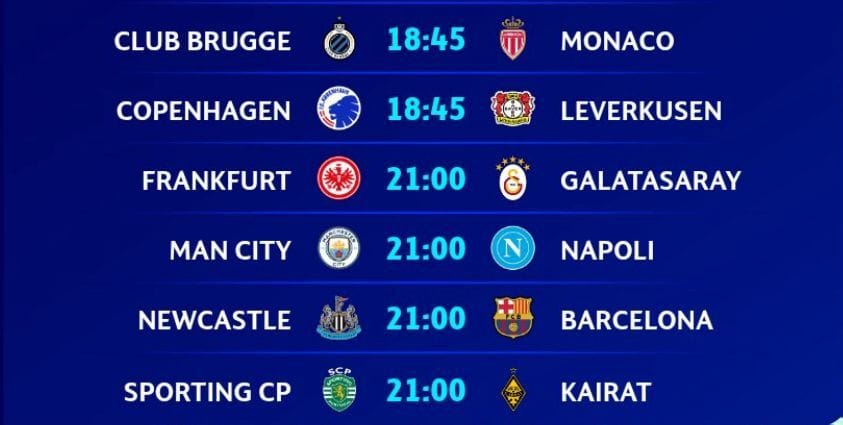 E se isso foi só a estreia… E falando em estreias, amanhã gigantes como Barcelona e Manchester City entram em campo, eles e mais 10 equipes, os jogos 2 primeiros jogos começam 13h45 (18h45 na imagem) e depois às 16h (21h na imagem), claro, ambos no horário de BSB e com 📺 transmissão na TNT e Max:
