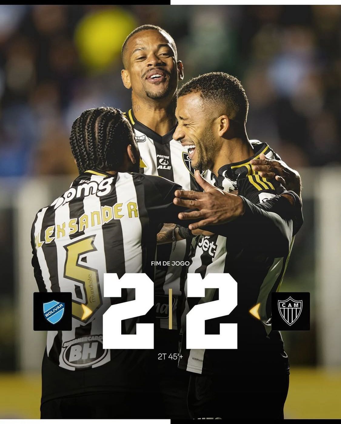 O Atlético-MG parecia dono da noite em La Paz, pois com 2 assistências de Scarpa e gols de Alexsander e Vitor Hugo colocaram 2 a 0 no placar ainda no primeiro tempo. Mas na etapa final, mesmo com um a menos, o Bolívar reagiu e arrancou o empate em 2 a 2, deixando tudo em aberto nas quartas de finais da Sul-Americana.