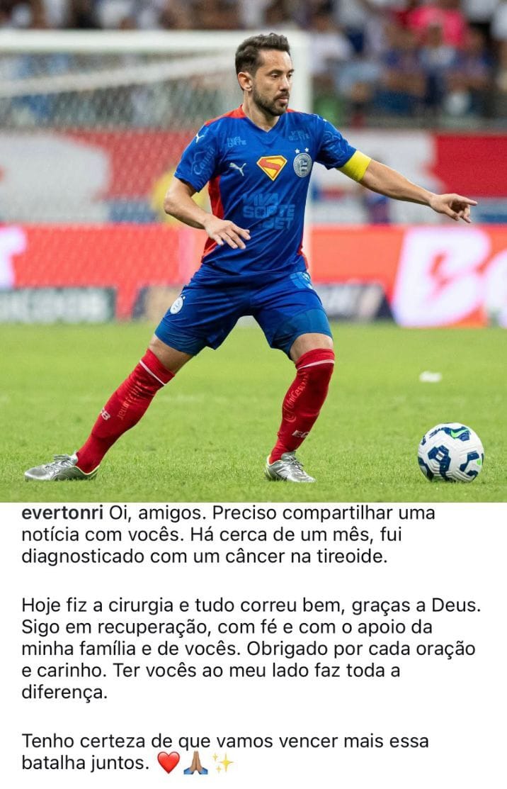 O futebol parou por um instante nesta segunda e não por um gol. O meia Everton Ribeiro, do Bahia, revelou que está enfrentando um câncer de tireoide e que passou por cirurgia nesta manhã.
