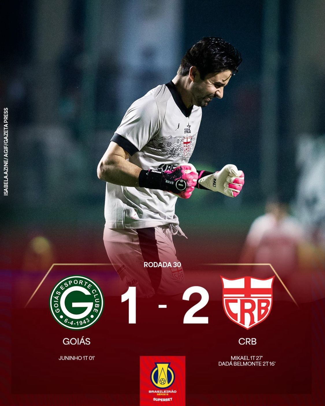 Em Goiânia, o Esmeraldino abriu o placar, mas levou 2 a 1 do CRB e viu o fim da invencibilidade de cinco jogos. A torcida pegou no pé do técnico Vagner Mancini e do diretor Lucas Andrino, enquanto o Coxa pode abrir cinco pontos de vantagem na ponta.