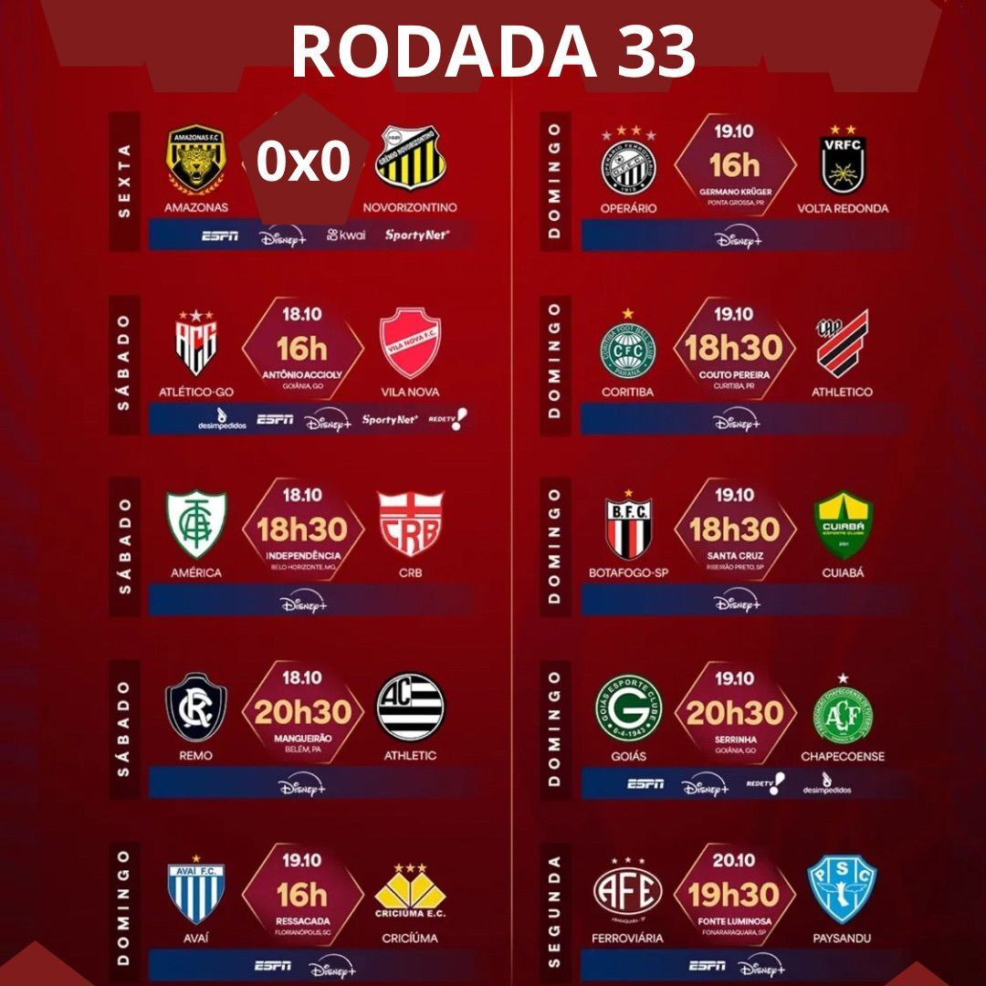 A Série B 2025 entrou na reta mais quente da temporada e o clima é de pura tensão! A 33ª rodada começou nesta sexta (17) e vai até segunda (20), com dez jogos que prometem drama, gols e corações acelerados por todo o Brasil.