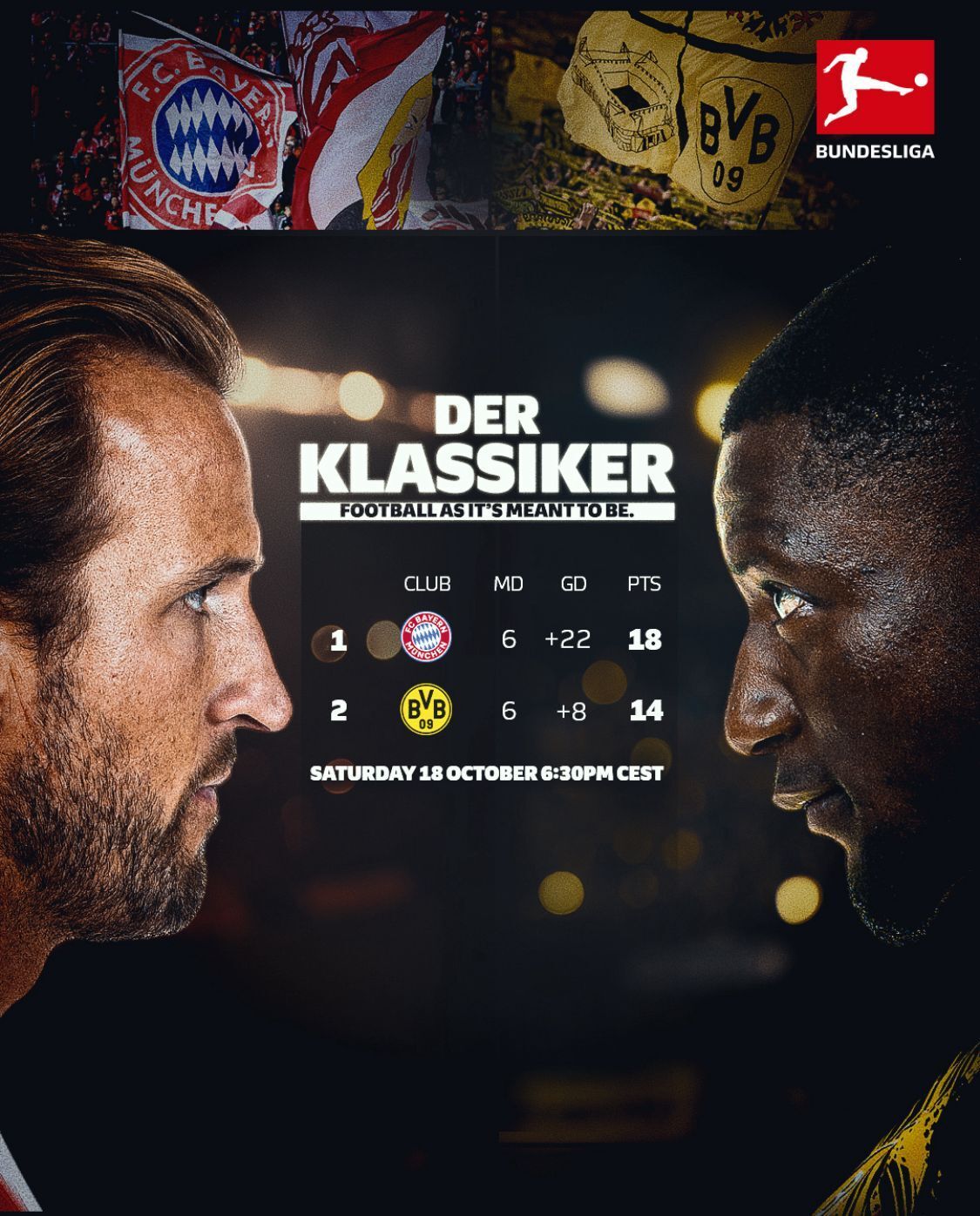 ⬛🟥🟨 BUNDESLIGA: Sábado (18), às 13h30, tem Bayern de Munique x Borussia Dortmund na Allianz Arena, às 13h30 (horário de Brasília) e transmissão na Cazé TV. O Der Klassiker (apelido do Clássico Alemão) com os dois invictos na temporada. O Bayern de Kompany soma 10 vitórias seguidas e 38 gols marcados, mas o Borussia quer provar força e quebrar a sequência bávara.