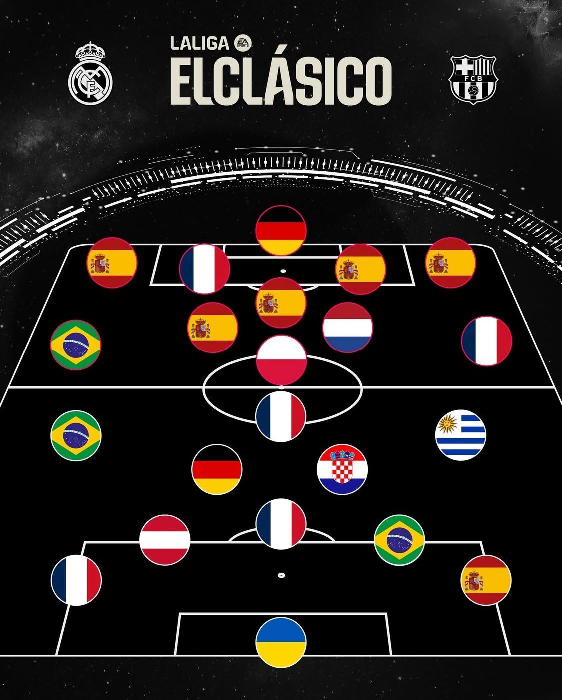 O Real lidera com 24 pontos (8 vitórias, 1 derrota), seguido de perto pelo Barça, com 22. Ambos vêm de vitória na Champions: os catalães atropelaram o Olympiacos por 6 a 1, e os merengues venceram a Juve com gol de Bellingham.