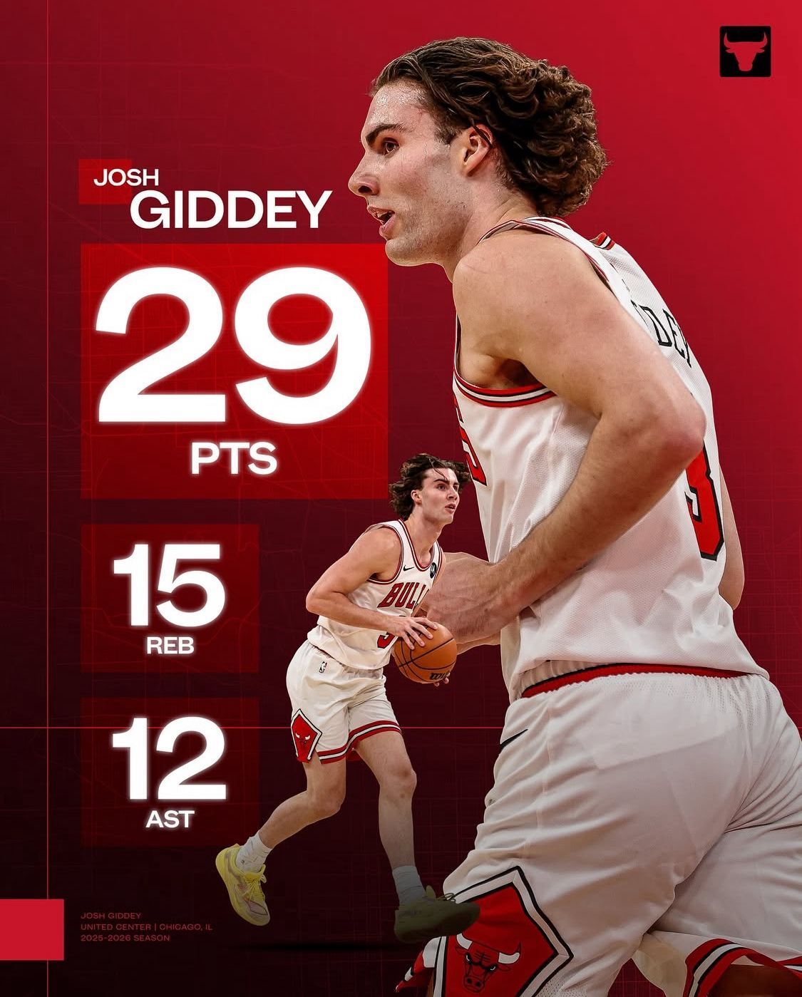 O Chicago Bulls venceu o Philadelphia 76ers por 113 a 111, nesta terça-feira (4), após reverter uma desvantagem de 24 pontos no United Center. A reação foi liderada por Josh Giddey, que brilhou com 29 pontos, 15 rebotes e 12 assistências, registrando seu segundo triplo-duplo seguido, algo que nenhum Bull fazia desde Michael Jordan.