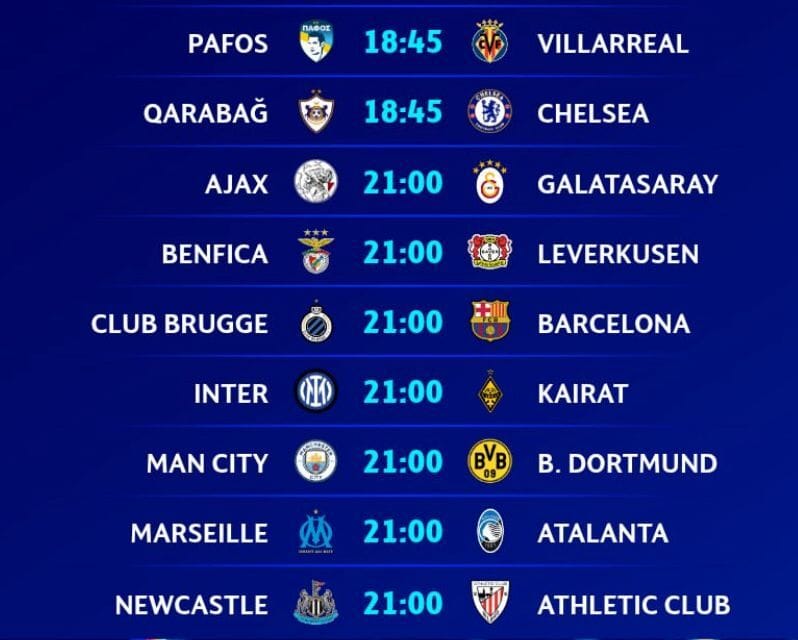 Outros placares: Napoli 0x0 Frankfurt / Atlético 3x1 USG / Tottenham 4x0 Copenhague (com o atacante brasileiro Richarlison errando pênalti) / Olympiacos 1x1 PSV / Juventus 1x1 Sporting / Bodø/Glimt 0x1 Mônaco