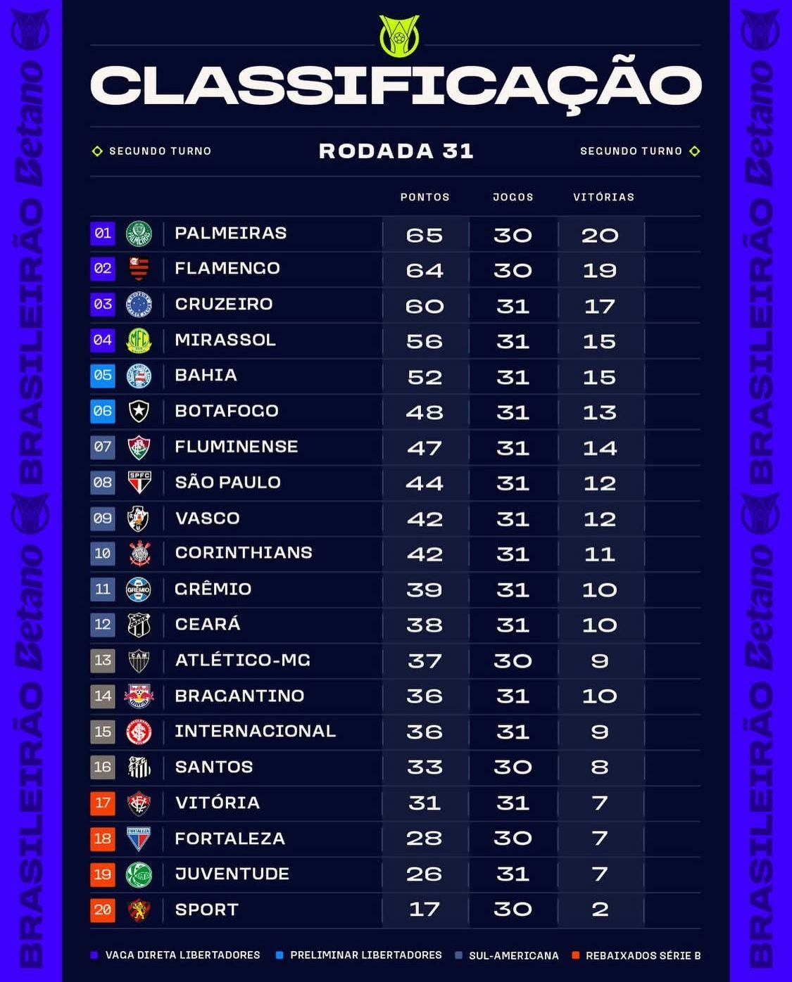 Chegou aquele momento do campeonato em que ninguém dorme tranquilo. Entre quarta (5) e quinta (6), a 32ª rodada da Série A promete tremer o país: disputa por liderança, briga direta por vaga na Libertadores e, claro, o desespero lá embaixo, onde cada ponto vale um pulmão, além de honra e garra pra jogar os clássicos regionais, que nessa rodada tem três.