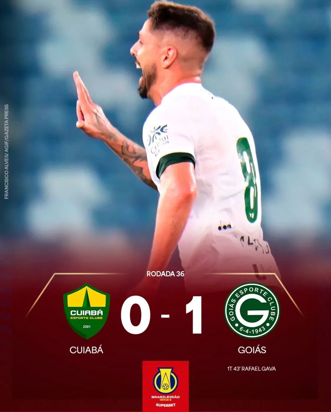 O Goiás segue vivo na corrida pelo acesso. Na Arena Pantanal, o Esmeraldino foi cirúrgico e venceu o Cuiabá por 1 a 0, com Lei do Ex assinada por Rafael Gava, que colocou a bola no ângulo em cobrança de falta. Jogo na cartilha Carille: paciência, bloco baixo, ataque só quando necessário. Funcionou.