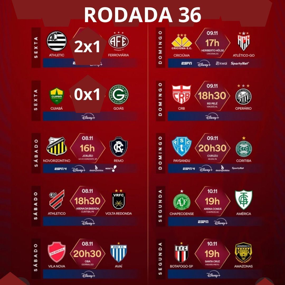 No desespero, o Athletic buscou no último segundo! Na luta contra o rebaixamento, o Athletic venceu a Ferroviária por 2 a 1 com gol aos 50 do segundo tempo, de Jhonatan, de cabeça, em cobrança de falta. Drama puro. Antes, Douglas Pelé abriu, Carlão empatou, e Vitor Barreto ainda foi expulso antes da jogada decisiva. Com a vitória, o Athletic sai do Z4 e pula para 15º, ultrapassando a própria Locomotiva. A Ferroviária agora entra em clima de sinal vermelho total.
