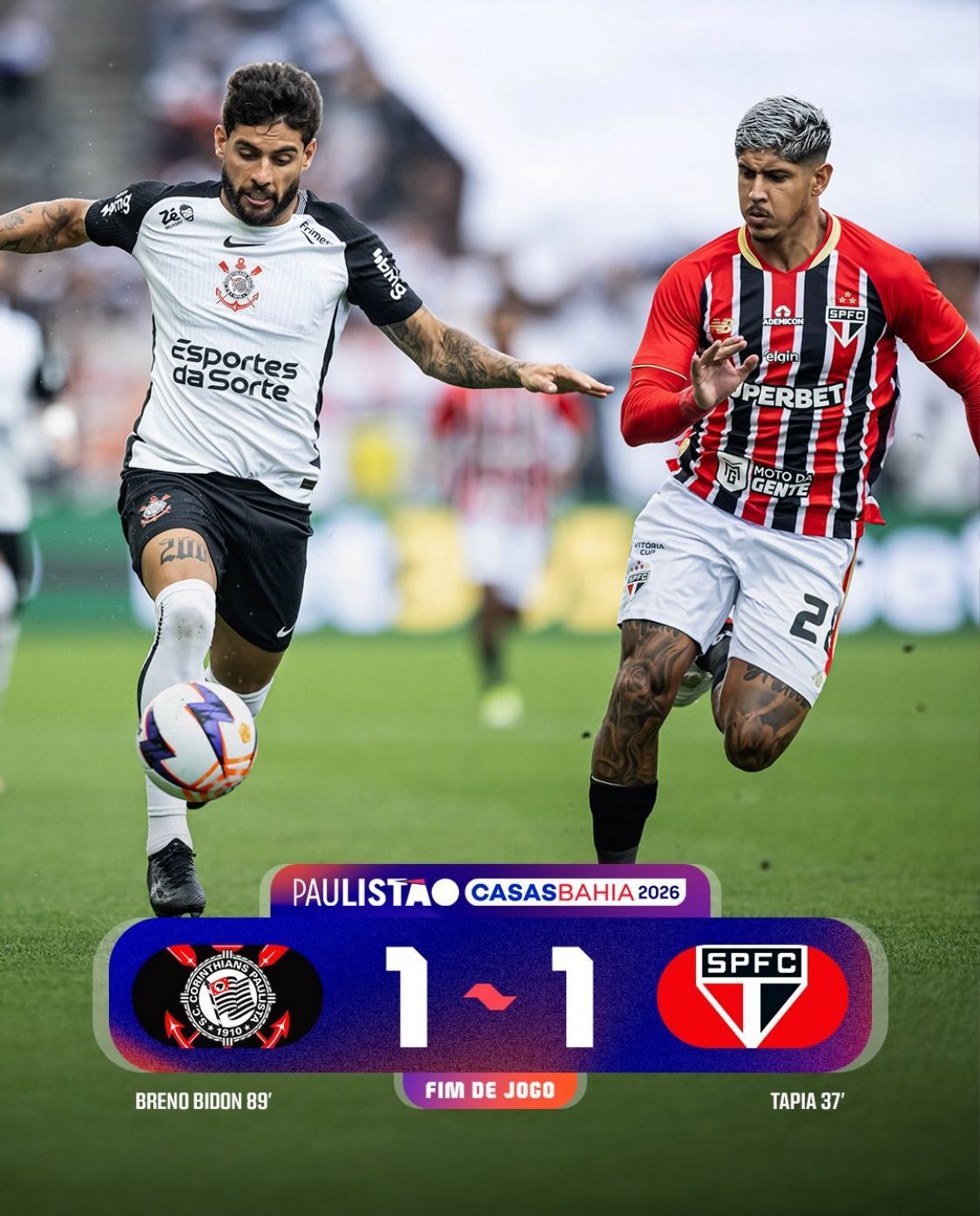 Na Neo Química Arena, o Timão se salvou no fim. O São Paulo esteve muito perto de vencer em Itaquera em um contexto pesado, dois dias após o impeachment de Julio Casares, mas Breno Bidon, nome mais cobiçado do elenco alvinegro, apareceu aos 90 minutos para decretar o 1 a 1. Um empate que manteve os rivais lado a lado, com quatro pontos, e reforçou a ideia de que clássico não respeita crise, só cobra.