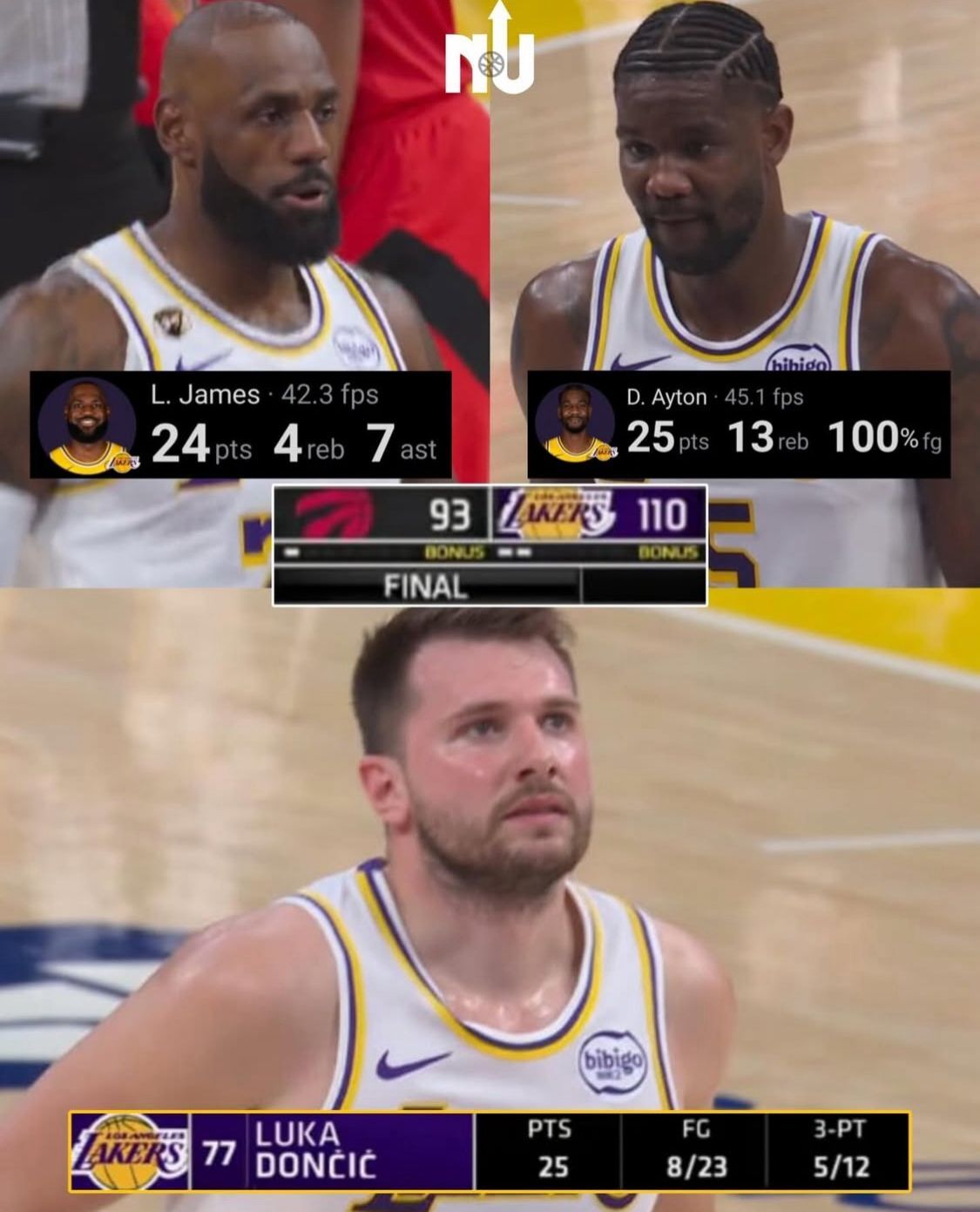 LeBron, Doncic e Ayton somaram 74 pontos e foram o eixo de um Lakers mais sólido dos dois lados da quadra. O camisa 23 não foi o maior pontuador, mas ditou o ritmo quando esteve em quadra com os reservas, enquanto o esloveno apareceu bem do perímetro e Ayton foi impecável perto da cesta, aproveitando cada posse. O Raptors até fez um bom primeiro tempo, liderado por Ingram e Barnes, mas perdeu intensidade quando o jogo apertou.